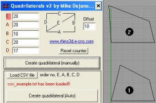 Input lengths to create quadrilateral or load Comma Separated Value (CSV) file for multiple auto quadrilaterals creation |