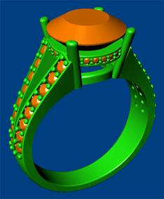 1. At this point the model has been built with basic gemstones as in the picture below and you are ready to render.