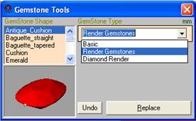 Note: Gemstones that are to be rendered as diamonds will also need diamond render material applied to the render gemstone. Read on to learn how to apply render materials.