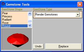 1. Select a gemstone shape from the list. In this case it is a round stone.