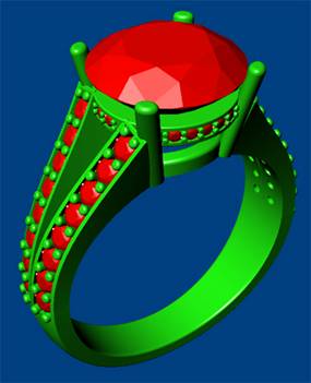 The basic gemstones are used for building the model. The simplicity of their shape allows them to be used for layout, cutting seats and chamfers for stone setting, and conserving memory for faster modeling. To learn how to use the basic gemstones read the following steps.