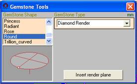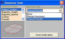 2. Select the gemstone shape from the list and click the insert render plane button.