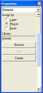 3. Click the render materials button to open object properties. Then select material from the drop down. Make sure the Plug-in radio button is check and click browse.