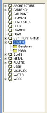 4. Select Giraffe3D material library, gemstone and metal materials are in separate folders.