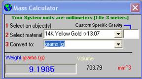 The mass calculator will calculator the mass of a valid closed surface or polysurface.