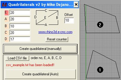 - Input lengths to create quadrilateral or load Comma Separated Value (CSV) file for multiple auto quadrilaterals creation